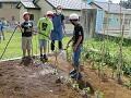 なかよし・わかば学級では生活単元学習で、野菜の手入れをしていました。ミニトマトのわき芽をとったり、支柱に茎をひもで縛ったりしていました。上手に縛れないところは優しく6年生が教えてあげて、とても心温まる場面でした。仕上げに、協力してお水をかけます。大きくなあれ~