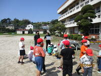 年に数回ですが、集団下校のときに先生方が各地区の子どもたちと一緒に歩きます。子どもたちの歩き方の指導をしたり、道すがら危険な場所を把握したりするために行っています。遠い地区の先生方は30分近く歩きます。安全な登下校のため、先生方もがんばっています。