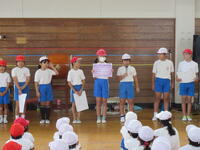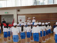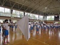 全校での運動会練習が、行われました。初めての全体練習なので、運動会のスローガンと各学級の運動会のめあての発表、応援団の紹介、集団行動の確認を行ってから、入場や開会式の練習を行いました。運動会のスローガンは、「笑顔でゴール!神里魂でキセキをおこせ!」です。スローガンにあるように、神里魂を込めて、たくさんの奇跡が起こる運動会にしたいです。