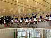 応援団の児童が曲を選び、振付を考えたオリジナル応援歌の練習も行っています。