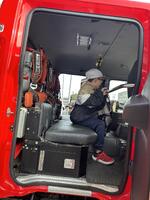 実際に消防のお仕事の内容を聞き、防火服を着ることがでました。