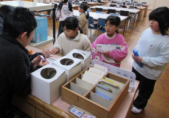 10月と1月の朝と昼休みには、図書委員会の子どもたちが「図書まつり」を開いてくれています。また、読書の記録を教室に掲示したり、たくさん本を読んだ子どもに読書賞を授与したりするなどの取組もしています。