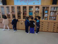 校内を一緒に歩きながら、教室の場所や特別教室の場所を紹介しました。案内する中で、「廊下は右側を歩くよ」など、学校でのルールも優しく伝える姿が見られ、1年生の頼もしさが感じられました。