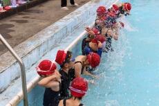 4・5・6年生は、泳力に合わせてコース別に練習を進めています。自由時間にはおにごっこなどで、楽しみながら水に親しんでいます。