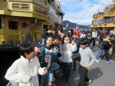 ホテルを出発し、ロープウエイに乗って大涌谷へ行きました。芦ノ湖では豪華な海賊船に乗り、紅葉真っ只中のすてきな風景を味わいました。そして最終の旅行地の箱根関所へ行き、資料館を見学しました。