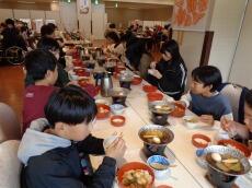 1日目のスタートは野外炊事でカレーを作りました。風が強く、寒い中ではありましたが、寒さに負けず、薪の準備をしたりお米を研いだり具材を切ったりと、それぞれが自分の役割を果たし、おいしいカレーを作ることができました。