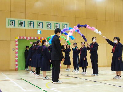 昨日、3月2日(月)に「3年生を送る会」を行いました。在校生が心を込めて準備を進め、会場には終始温かな雰囲気が広がりました。生徒会役員の生徒を中心に企画、準備、当日の進行を行いました。