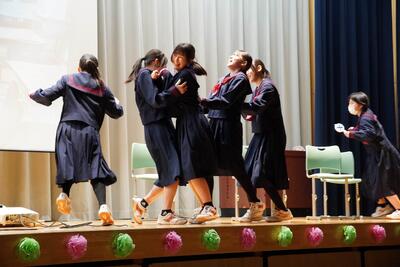 1・2年生は、この日のために一生懸命練習しました。どの学年も工夫を凝らした演技で、3年生への感謝の気持ちがまっすぐに伝わる素晴らしいステージとなりました。緊張しながらも一生懸命に演じる姿に、会場からは自然と大きな拍手がお子贈られました。