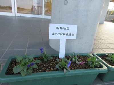 新島地区まちづくり協議会の皆様より、色とりどりのパンジーが植えられたプランターを寄贈いただきました。