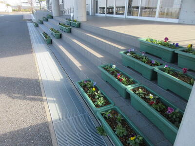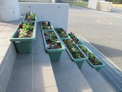 いただいたプランターは、美化委員の生徒を中心に水やりや手入れを行いながら大切に育ててまいります。まちづくり協議会の皆様、誠にありがとうございました。