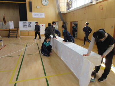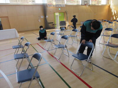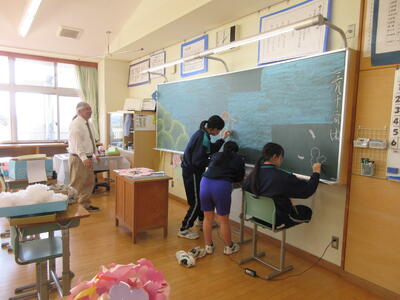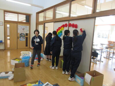 卒業式に向けた準備を1・2年生が力を合わせて行いました。会場の清掃やイス並べ、掲示物の装飾など、どの作業にも真剣に取り組み、3年生の門出を支えようとする気持ちが伝わってきました。