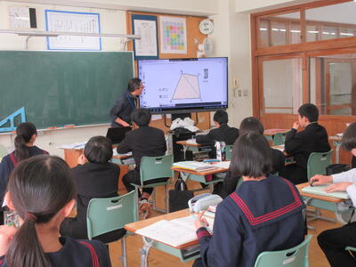 <1年生…数学、家庭> 四角形の角度、包丁の使い方等について学習しました。
