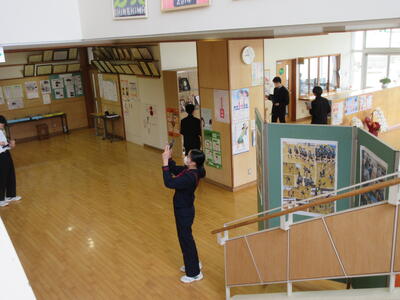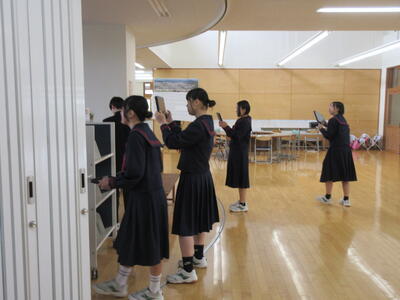 美術では、タブレットで校舎内の風景を撮影しました。色々な角度から写真を撮る工夫が見られました。今後の作品の完成が楽しみです。