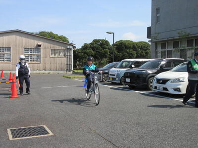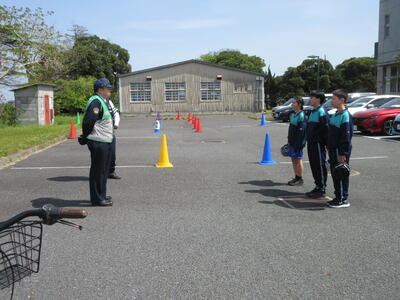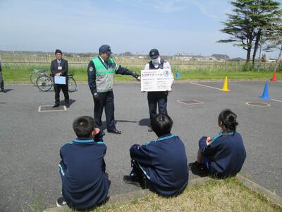 4月14日(火)交通安全教室では、香取警察署と新島駐在所より2名の方々が来てくださり、交通ルールや自転車の乗り方注意点について教えていただきました。1年生は真剣な表情で話を聞き、実際の場面を想定した練習にも積極的に参加しました。