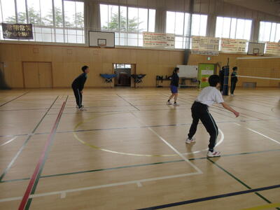 2年生最後の保健体育の授業は、バレーボールでした。4対4で戦いました。広いコートでの戦いでしたが、白熱した戦いとなりました。