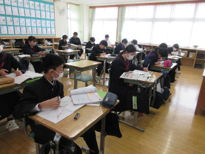 昨日、学年末PTAにて授業参観と学年PTAを実施しました。1年生は英語、2年生は道徳、特別支援学級は自立学習の授業を公開し、どの学級でも生徒たちが落ち着いて学習に取り組む姿が見られました。