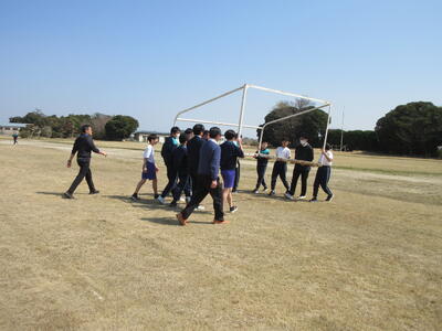 保健体育では、サッカーの授業が終わりゴールを先生方と一緒に元の場所へ運びました。協力してくれて、ありがとう!