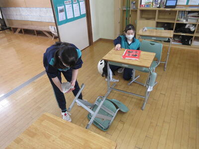 19日(木)には、大掃除を行いました。1年間お世話になった机、いす、ロッカーなど教室や下駄箱をみなきれいにしました。感謝の気持ちを込めて皆で頑張りました。