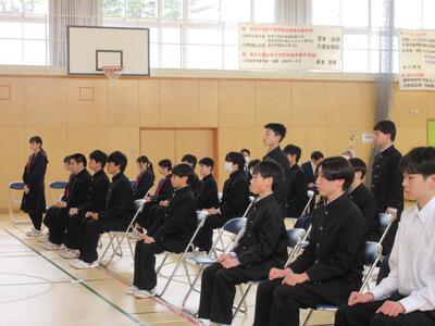 本日、令和7年度修了式を行いました。1年間の学びを締めくくる大切な式として、生徒たちは落ち着いた態度で臨み、各学年の代表生徒がこの一年を振り返る言葉を述べました。
