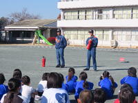 今日は、佐原消防署から3名の消防士さんを迎え、火災を想定した避難訓練を行いました。児童は、避難の約束「お」「か」「し」「も」をしっかりと守り、落ち着いて整然と避難できました。