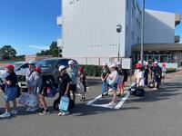 今日は、1・2・3年生が合同で、アクアワールド茨城県大洗水族館へ遠足に出かけました。お弁当の入ったリュックサックを背負って集合した児童は、楽しみで仕方がない様子。また、3年生は一番年上の学年、下級生のお手本になろうと、ちょっぴり引き締まった表情です。一日元気で、楽しい遠足になりますようにと見送りました。今日はどんな発見があるのかな。帰って来てから児童の話を聞くのが楽しみです。