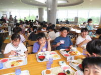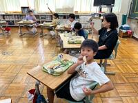 昨日、3年生が梨の収穫体験でお世話になった、鈴木梨園さんから、わらびが丘小学校の皆さんにと、大きくて立派な梨をたくさんいただきました。今日は、1~3年生と6年生が、給食の時間に甘くて、最高においしい梨を味わいました。今、宿泊学習に出かけている4・5年生は、月曜日のお楽しみです。みずみずしく、香りもさわやか、甘味と酸味のバランスがよいのが特徴の「豊水」は、まさに今が旬です。ごちそうさまでした!!