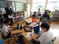 今日は、香取警察署から講師をお招きし、不審者対応避難訓練を実施しました。ねらいは2つ。1つは学校敷地内に不審者が侵入した場合、児童が安全に避難できるように教職員が組織的に適切かつ迅速な対応できるようにすること、もう1つは、 緊急事態が発生した時、児童が安全な避難行動について理解することです。各学級で適切な避難行動については指導していましたが、警察官が本気で不審者役を演じ、想定外の動きもあった訓練は、とても緊張感のあるものでした。