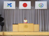 前期終業式では、3名の代表児童(2年、4年、6年)が、新しい学年が始まってからこれまでに自分が努力したこと、できるようになったこと、これからがんばりたいこと、できるようになりたいことなどを発表しました。また、自分のことだけでなく、学級や学校のことを考えた内容も含まれており、頼もしさを感じました。