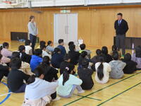 今回のメインプログラムは大澤先生のお話です。テーマは「ゲームとの付き合い方」。ゲームは約束やマナーを守ってこそ、楽しく遊べるものです。大澤先生は、児童とやり取りをしながら、「ゲームに支配されないこと」「自分や家族と決めた約束を守ること」「例えゲーム中であっても、悪い言葉を使わないこと」等というメッセージを伝えました。身近なゲームについてや、自分にも心当たりがあるちょっと「良くないこと」にスポットの当たった話に、耳が痛く感じる児童もいたようです。でも、みんなうなずきながらしっかり聞いたり、積極的に手を挙げ、感想を発表していました。