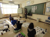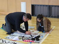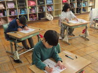 今日は、書き初め練習会に前校長の海寳和宏先生を講師にお招きし、3年生から6年生がご指導を受けました。今年の題は、3年生「ゆき山」4年生「初もうで」5年生「美しい空」6年生「新春の朝」です。海寳先生からは、文字の形の特徴や書き方のポイント、バランスの取り方など、一つ一つ丁寧に教えていただきました。「上の部分が大きくなり過ぎてバランスが悪いなあ」「書き順に気をつけたらうまくいった」など、児童は自分の字にじっくりと向き合いながら、より良い作品を目指して練習に取り組みました。冬休み明けの書き初め大会が今から楽しみです。