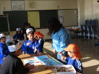 今日はまんまる保育園の年長さんたちが、1年生が開催した「わらびっ子あきまつり」に参加しました。木の実や枝、葉っぱなどで作ったおもちゃで遊べるコーナーや、ゲームなど、様々な楽しい企画を考え、今日まで準備をしてきた1年生。いつもよりちょっぴりお兄さん、お姉さんになるとともに、誇らしげな様子です。みんなで仲良く「あきまつり」を成功させました。