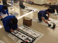 今日は校内書き初め会を行いました。書き初めは、平安時代の宮中の儀式「吉書始(きっしょはじめ)」が起源です。「吉書始」とは、天皇が元旦翌朝に詩歌などを詠み書き、臣下もそれに習った宮中行事のことです。その後、一年の学びや技能向上、抱負を自覚する「事始め」、墨の香りと筆の運びに集中し、精神を整える儀式として行われるようになり、1月2日に、元日に汲んだ清らかな水、「若水」で墨をすり、「恵方」に向かって詩歌や文字を書く習慣が定着しました。「若水」で墨をすることは祈りの行為、恵方に向かって書くことは、無病息災や学業成就などを願う神事としての側面もあるそうです。