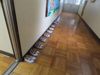 さすがわらびっ子! 上履きをそろえて検診会場へ