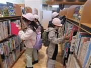 図書館では、館長さんから本の種類や陳列棚、自動貸し出し機の説明をしてもらいました。他にも利用する方がいる中、マナーを守って利用することができました。