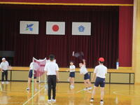 2月3日には、児童会主催で、学年の枠を超えて遊ぶ子ども達の顔は笑顔でいっぱいでした。へびじゃんけんとお手玉運びリレーをしました。