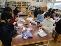 1月7・8日に行った校内書き初め展。子どもたちは、集中して取り組み、立派に作品を仕上げることができました。13~16日に実施された展覧会には多くの方が見に来てくださり、ありがとうございました。