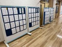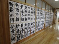 1月7・8日に行った校内書き初め展。子どもたちは、集中して取り組み、立派に作品を仕上げることができました。13~16日に実施された展覧会には多くの方が見に来てくださり、ありがとうございました。