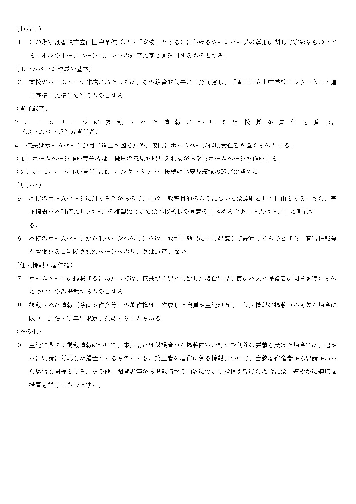 香取市小中学校インターネット運用基準」及び本校の「学校ホームページへの掲載に係る事前承認について」に基づいて運用しています。