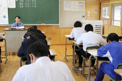 本日は、2年生は、社会体験学習事前指導でした。各事業所の代表が意気込みを話をしました。ぜひ、一生懸命に取り組み仕事の素晴らしさを感じてきてほしいです。