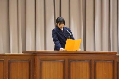代表生徒による「一年の反省と次年度への抱負」の発表もあり、充実した締めくくりとなりました。