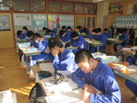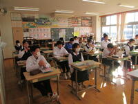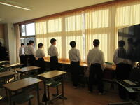 1年生は、クラスの仲間とのコミュニケーションを深めるため、朝の会を大切にしています。元気な挨拶と心を合わせた歌声練習も頑張っています。ただ、インフルエンザ予防対策で、壁に向かって練習しています!2年生が、学年閉鎖のため、全校生徒が協力し、登下校時の手洗いうがいの励行や教室の換気を意識するなど、予防対策に努めています。健康管理を徹底することで、3年生に影響がないようにします。安心して学校生活を送れる環境を維持しています。良い一日を元気にスタートさせています。