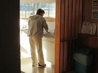 江波戸先生が、今日も朝のルーティーンとして廊下などの掃除を行ってくれています。