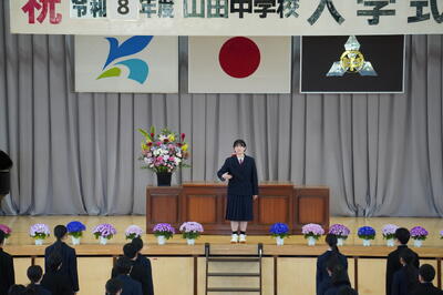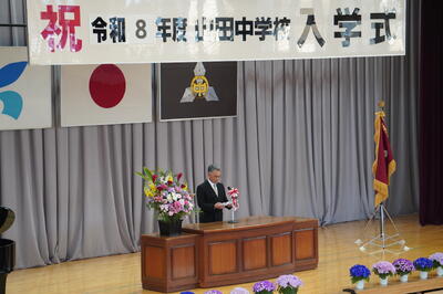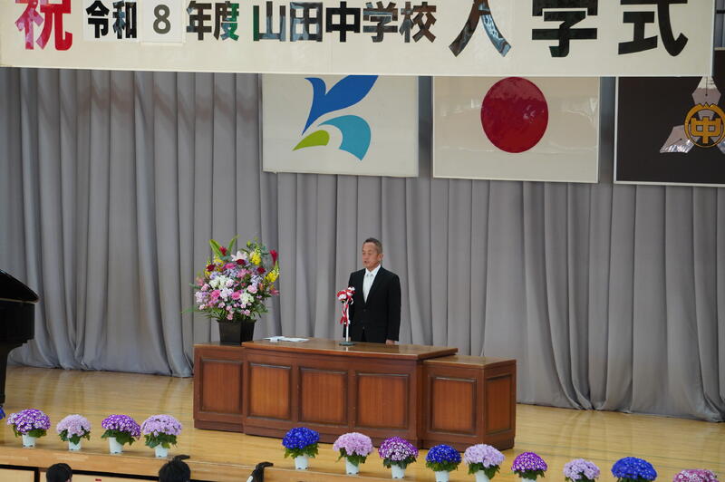 本日、この素晴らしい晴天のもと、令和8年度 第47回 香取市立山田中学校 入学式が挙行できたことに感謝いたします。学校教育は、家庭や地域との深い連携があってこそ完成するものです。今後とも、保護者・地域の皆様、関係各位のご支援とご鞭撻を賜りますようお願いいたします。皆さまと共に豊かな時間を紡ぎ、誠心誠意、歩んでまいる所存です。どうぞよろしくお願いいたします。