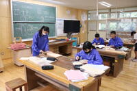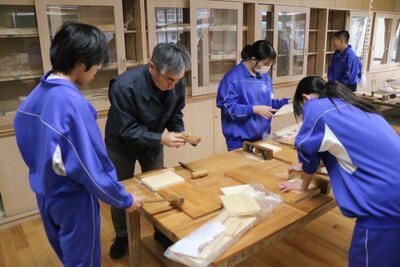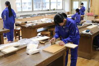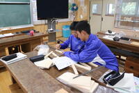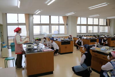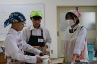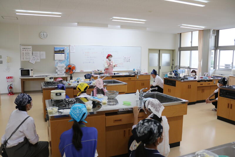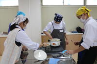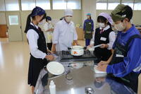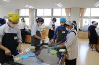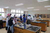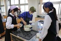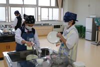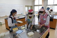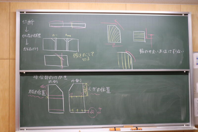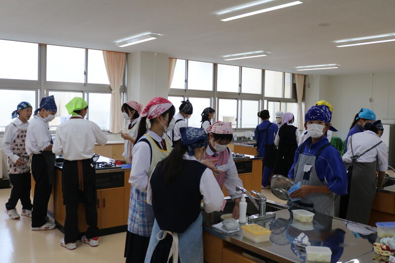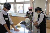今日は、1年2組が家庭科で、調理実習でした。1年1組は技術科で、木材加工で本立てを作制していました。
