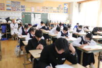 今年度を締めくくる最後の定期テストであり、学年の評定を左右する重要な試験です。試験開始の直前までノートを見返す姿、そして一問に集中してペンを走らせる音からは、3年生に負けないほどの気迫が伝わっています。