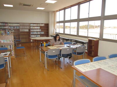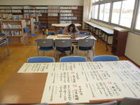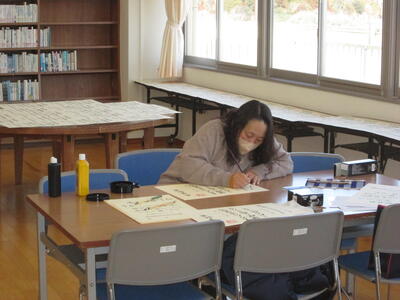 卒業式を間近に控えた本日、本校に懐かしいお客様が来校されました。昨春、惜しまれつつ転出された前教頭の小林先生です。異動先でのご多忙な日々の中、時間を縫って図書室へと足を運んでくださった小林先生。静寂に包まれた図書室で、卒業生一人ひとりの顔を思い浮かべながら、一筆一筆、魂を込めて筆を進めていただきました。