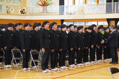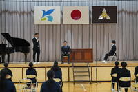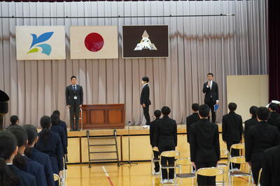 式典を象徴する大役の伝統を繋ぐ答辞・送辞、感動を演出する指揮・伴奏、そして威厳を保つ旗手が、大役を任された代表者として、本番を前に本日、卒業証書授与式練習の初日に『生徒全員へのメッセージ意気込み』を伝えました。感謝の心と新たな門出への決意を言葉で届けました。自分の役割を頑張ってほしいです!よろしくお願いします。