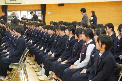 本日、開催いたしました「三年生を送る会」におきましては、月末のご多忙中、また平日のお忙しい時間帯にもかかわらず、80名もの保護者の皆様にご来校いただき、誠にありがとうございました。
