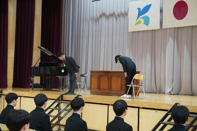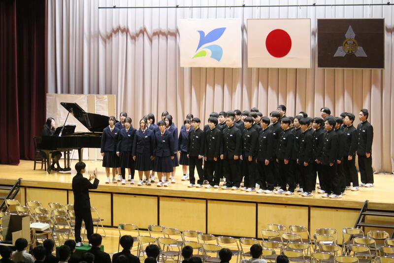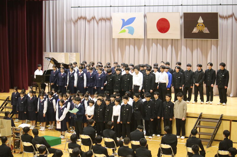 合唱プログラムでは、1・2年生による「そのままの君で」、そして3年生による「3月9日」が体育館に響き渡りました。特に入試発表を目前に控えた時期でありながら、後輩たちのために心を込めて歌い上げた3年生の姿には、最上級生としての誇りと感謝の念が溢れており、大変胸を打たれるものでした。互いを思いやり、感謝を伝え合う、まさに「素敵な心温まる送る会」となりました。3年生の両担任が涙が止まらない状況でした。