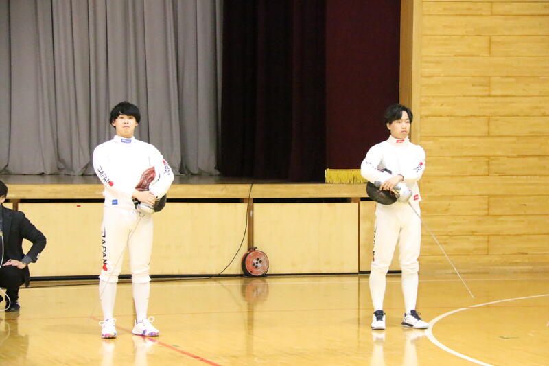 講師として、東京2020大会男子エペ団体金メダリストの宇山賢(うやま さとる)さんをお招きし、さらに公益社団法人日本フェンシング協会所属の現役選手である髙橋未楽(たかはし みらく)選手、弓長昇主(ゆみなが たかゆき)選手にもデモンストレーション等のために、ご参加いただきました。